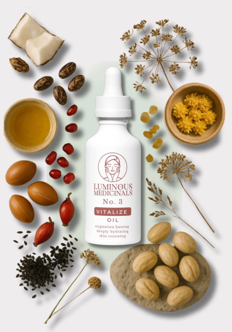 A luxurious, circulation-boosting facial oil designed to hydrate, tone, and renew. With organic Castor, Cacay, CO₂ Rosehip, Carrot Seed, Black Seed, and Frankincense, it nourishes deeply, supports lymphatic flow, and enhances glow — ideal for Gua Sha, cupping, or daily radiance.